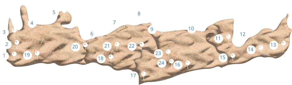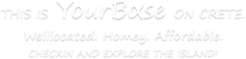 The Base is situated in Almyrida, a small townclose to Kalyves and Plaka, both touristic hotspots. The airport ofChania is only 40 minutes away and Rethymno about one hour by car.The little town of Almyrida is not overcrowded and offers access both to water the green area of Apokoronas.