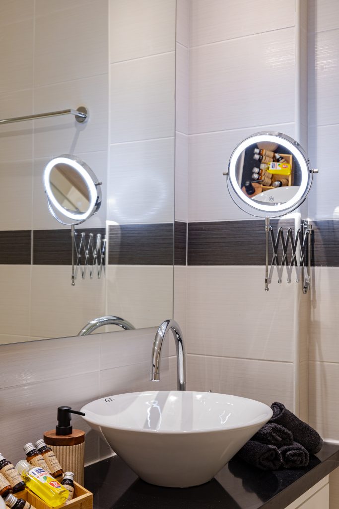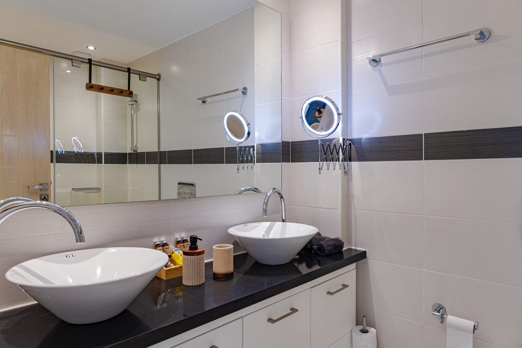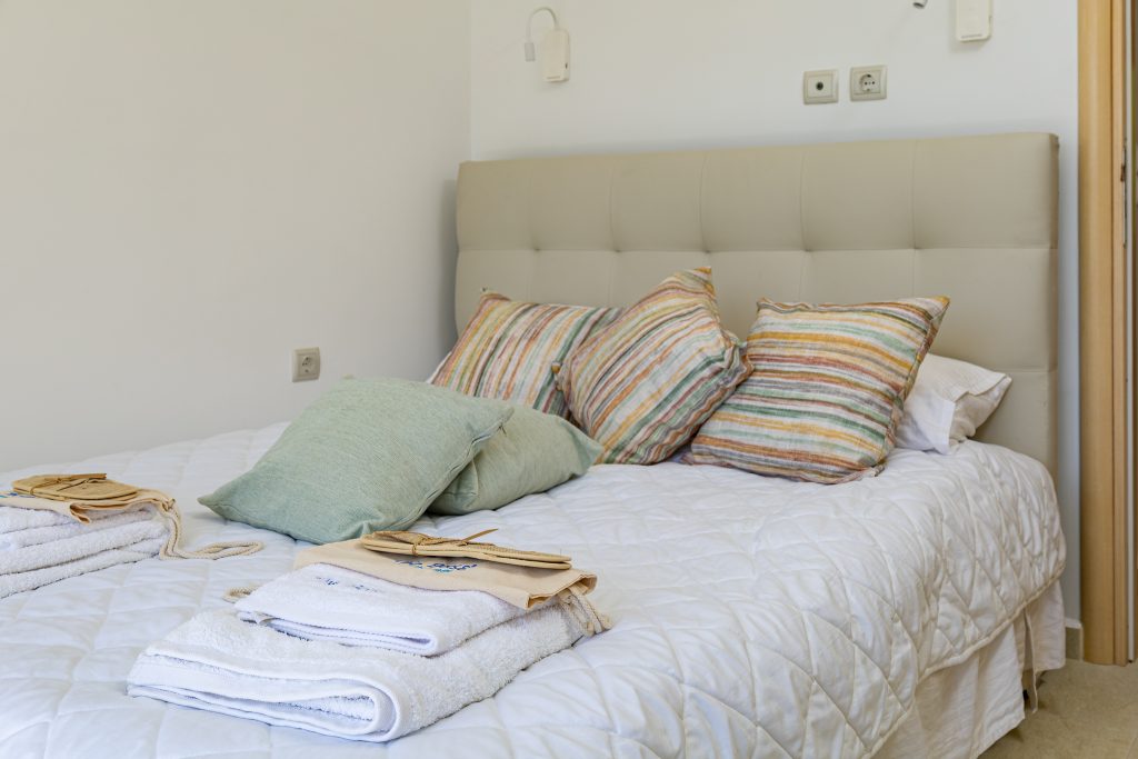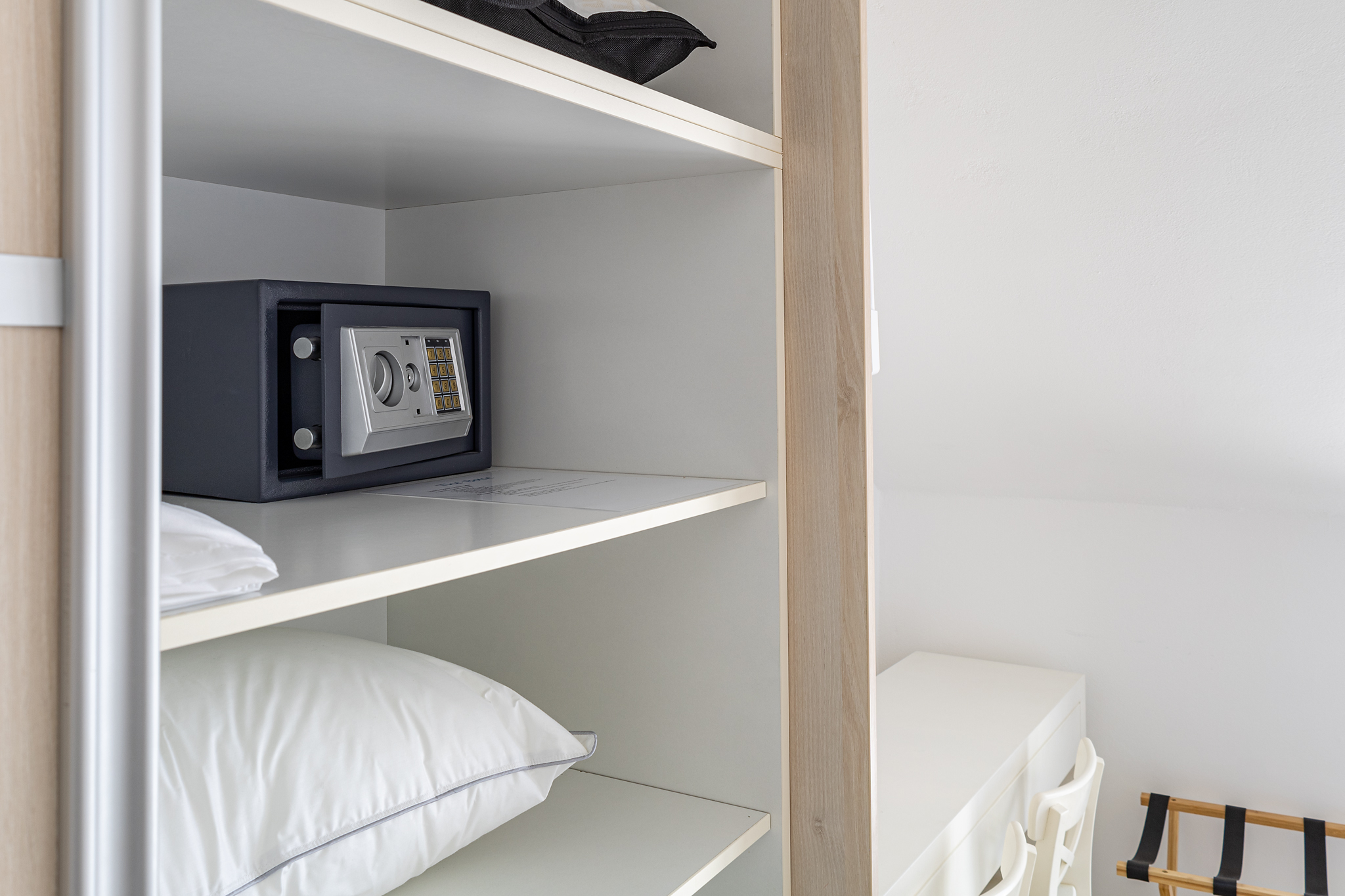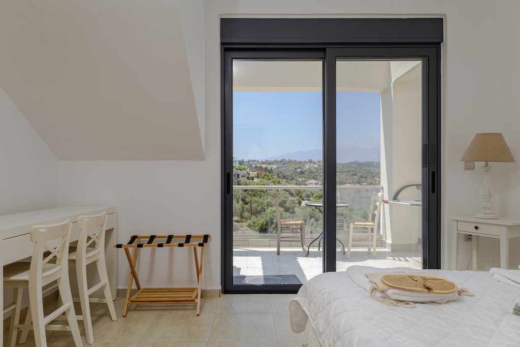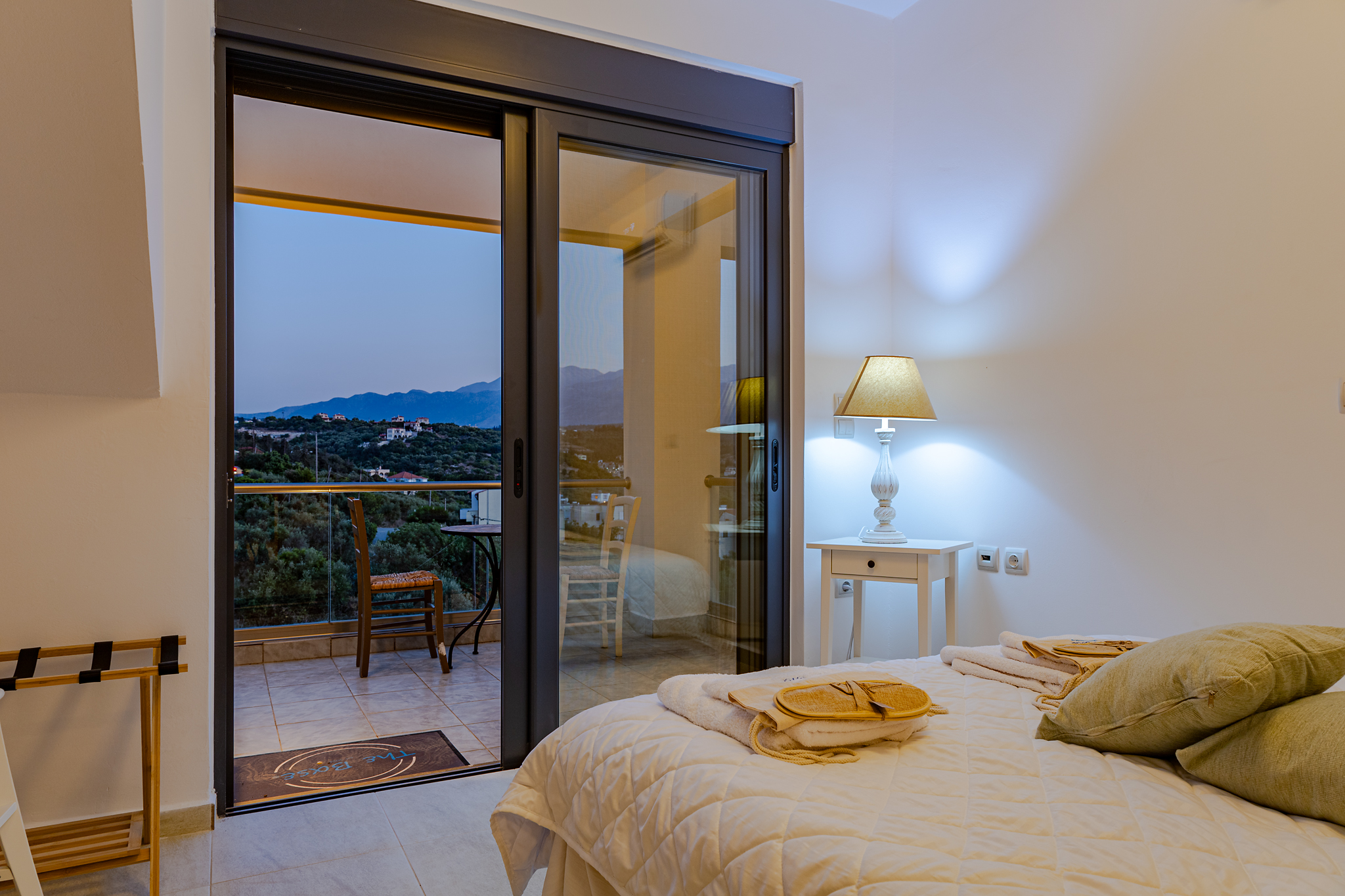 On the first floor, another two people can enjoy privacy in a room with own balcony and a bed sized 1,60×200. Like in the entire BASE, built-in wardrobes in each room offer enough space for your belongings. Enjoy the peaceful view at the White Mountains from this small balcony.