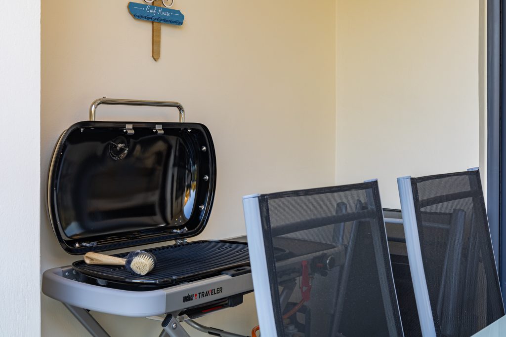 Enjoy your morning coffee with a peaceful view at the White Mountains, or enjoy a family barbeque after a day at the beach. Apart from the indoor kitchen table, you will find a table for six persons on the veranda. Toddler seats and a baby seat can be found in the ground floor